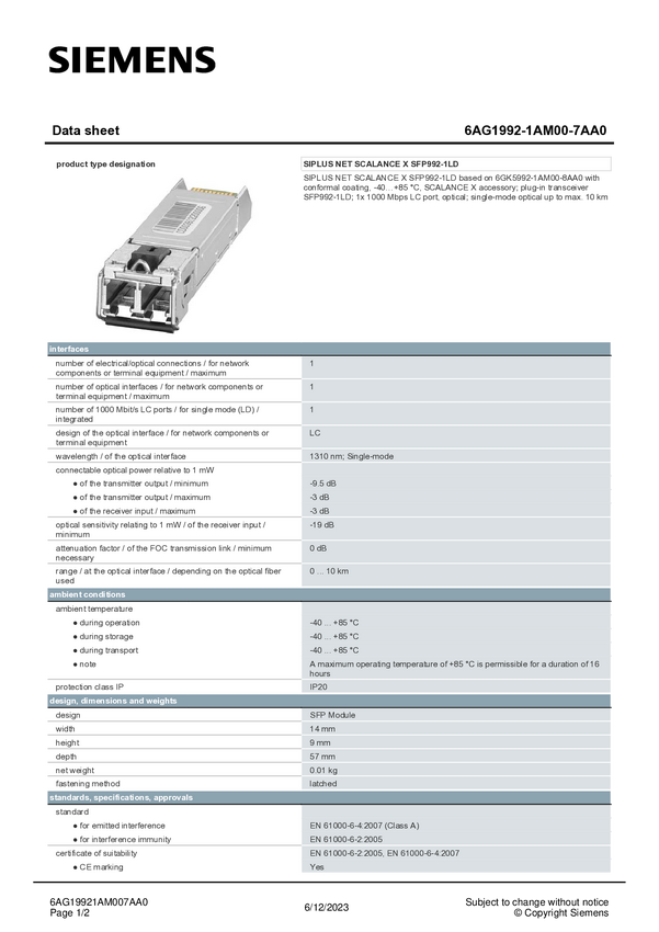 Siemens 6AG1992-1AM00-7AA0 Switch przemysłowy Ethernet