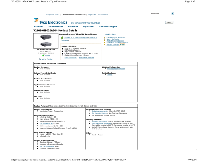 Electromechanical Relay SPST-NO/SPST-NC 5A 33VDC 1.7KOhm Plug-In