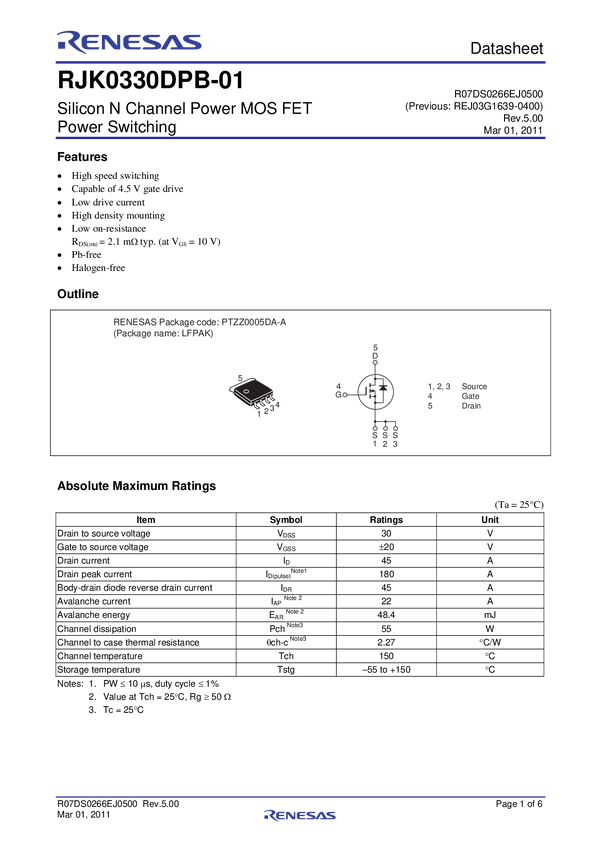 Nch Power MOSFET 30V 45A 2.7mohm LFPAK56