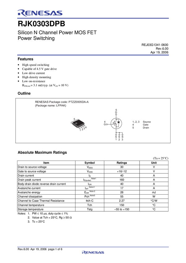 Nch Single Power Mosfet 30V 40A 3.7Mohm Lfpak