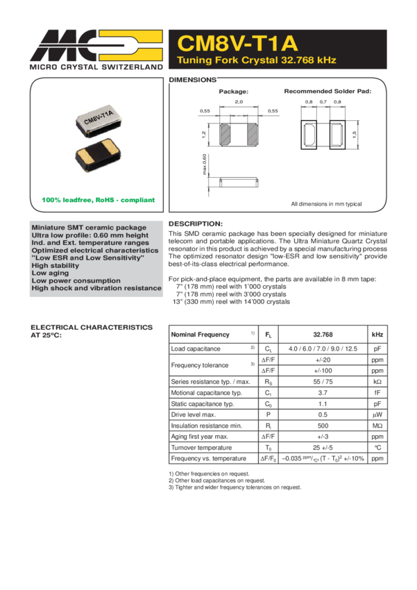 Crystal 0.032768MHz 7pF 2-Pin CSMD T/R