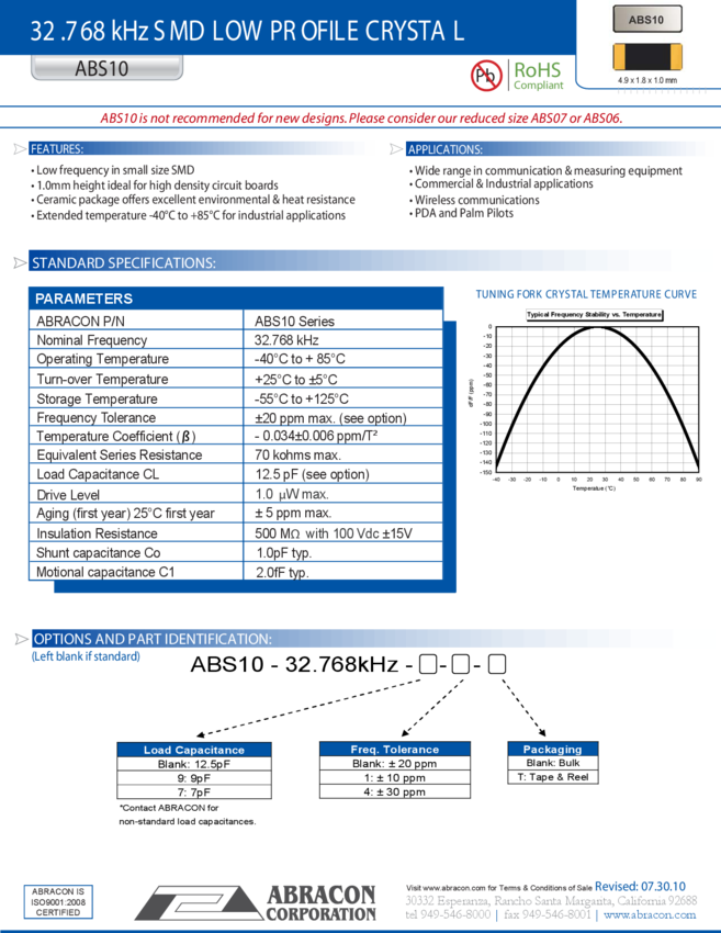 Crystal 0.032768MHz 7pF ±20ppm 2-Pin SMD T/R