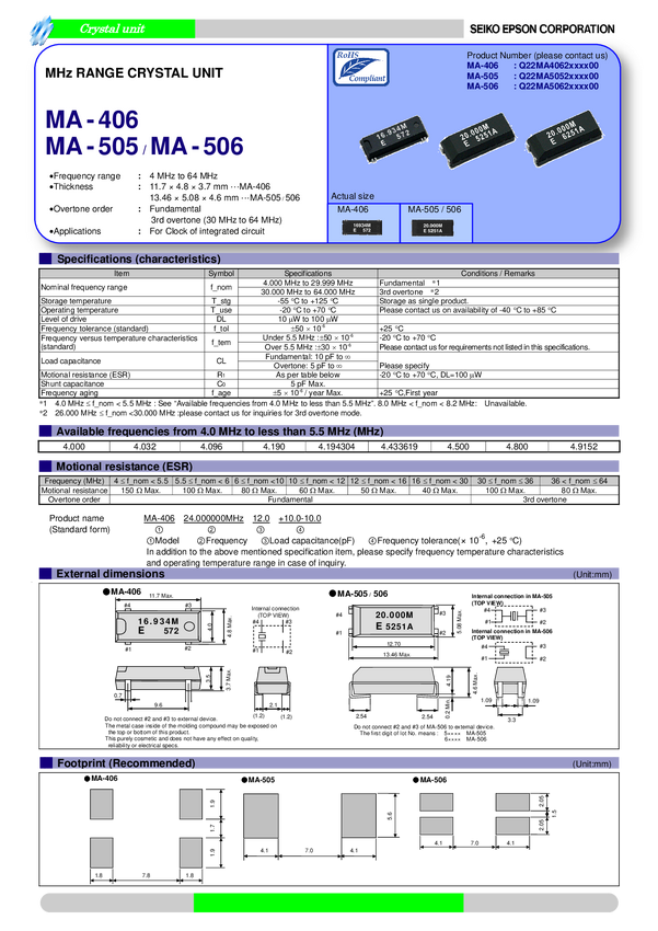 Rezonator kwarcowy; Q16.000; kwarc; 16MHz; MA-505; 12,7x5,08x4,19mm; SMD; EPSON; RoHS