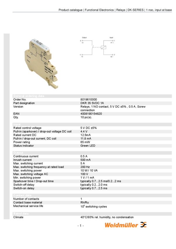 Electromechanical Relay SPST-NO 5A 5VDC 400Ohm DIN Rail