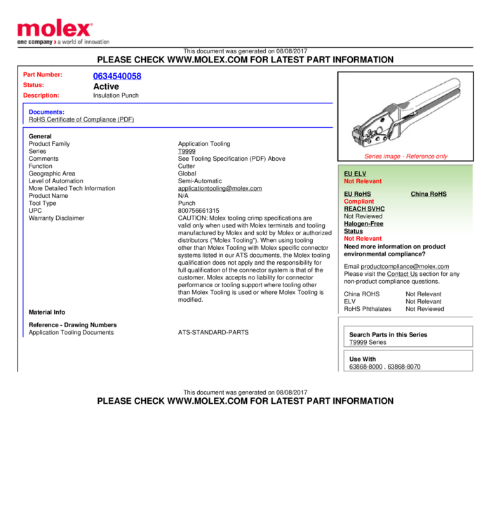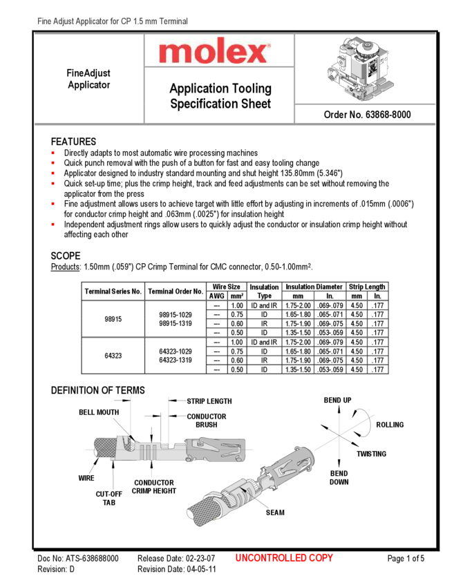 Conductor Punch for 63868-8000 FineAdjust Applicator and 63868-8070 Tool Kits