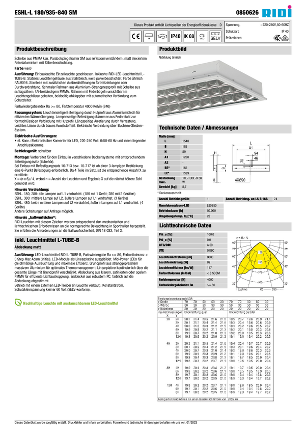 Lampa do zabudowy RIDI 850626 850626 69 W 8080 lm
