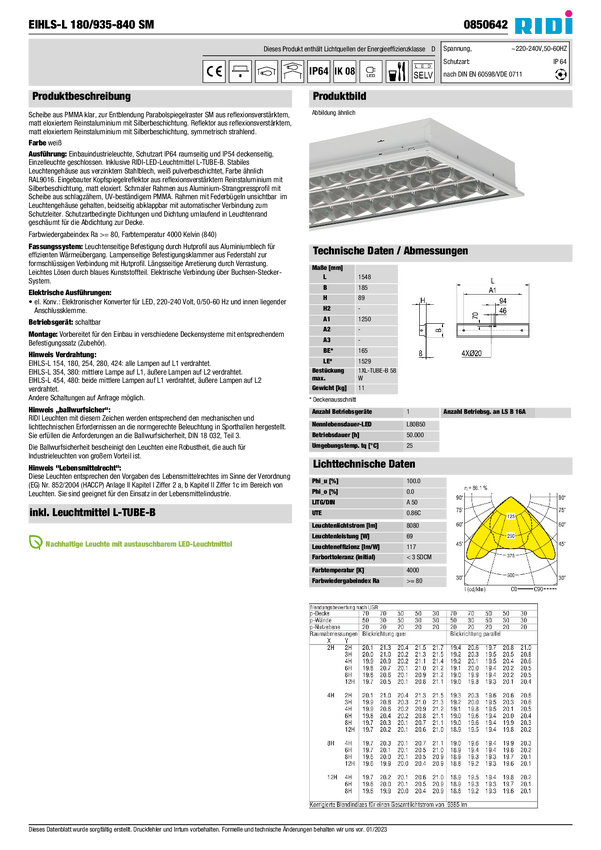 Lampa do zabudowy RIDI 850642 850642 69 W 8080 lm
