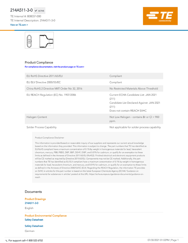 TE Connectivity 808830-1, 1x -02050007991601