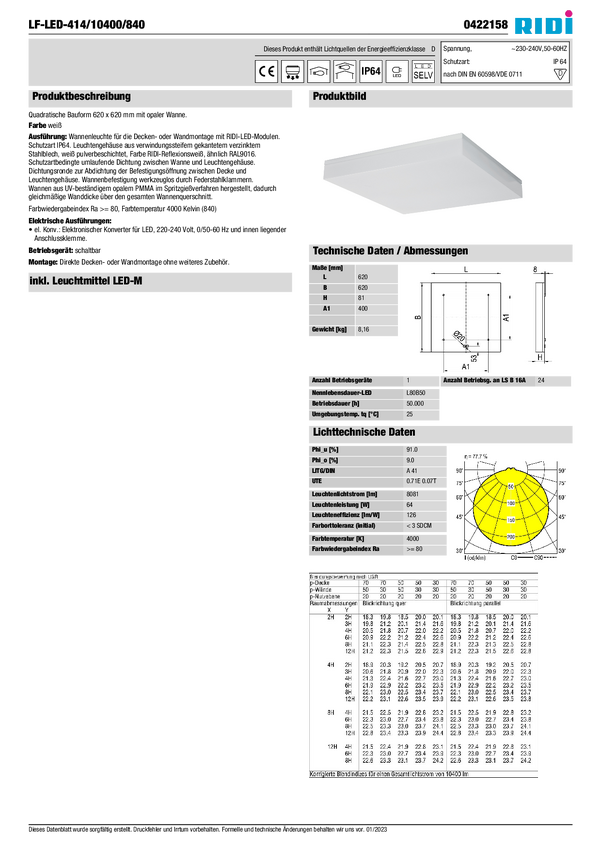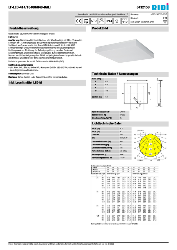 Lampa do zabudowy RIDI 860642 860642 69 W 8080 lm
