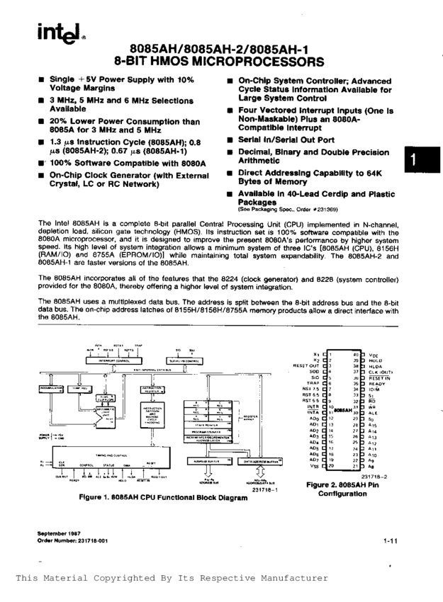 8088, 8-Bit HMOS Microprocessor, PDIP-40