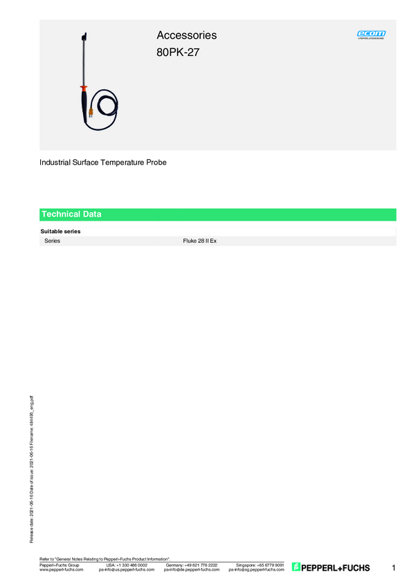 Pepperl+Fuchs 484495 80PK-27 Czujnik temperatury 1 szt.