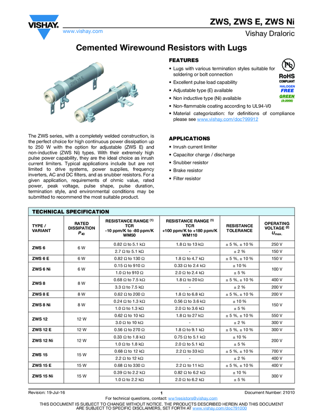 Res Wirewound 1.5 Ohm 10% 110W -10 to -80ppm/°C Radial Lug Bolt-On Loose Pack
