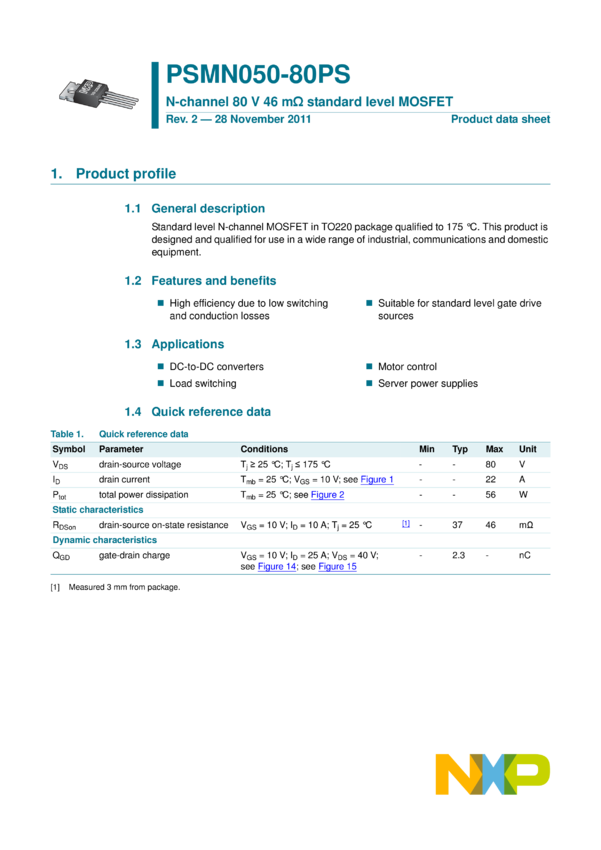 N-channel 80 V, 3.3 mΩ standard level MOSFET in TO-220