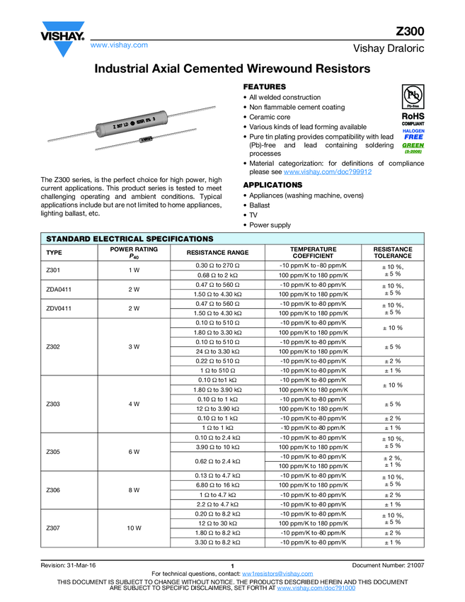 Res Wirewound 0.39 Ohm 5% 1W -10 to -80ppm/°C Conformal AXL Thru-Hole Ammo Pack