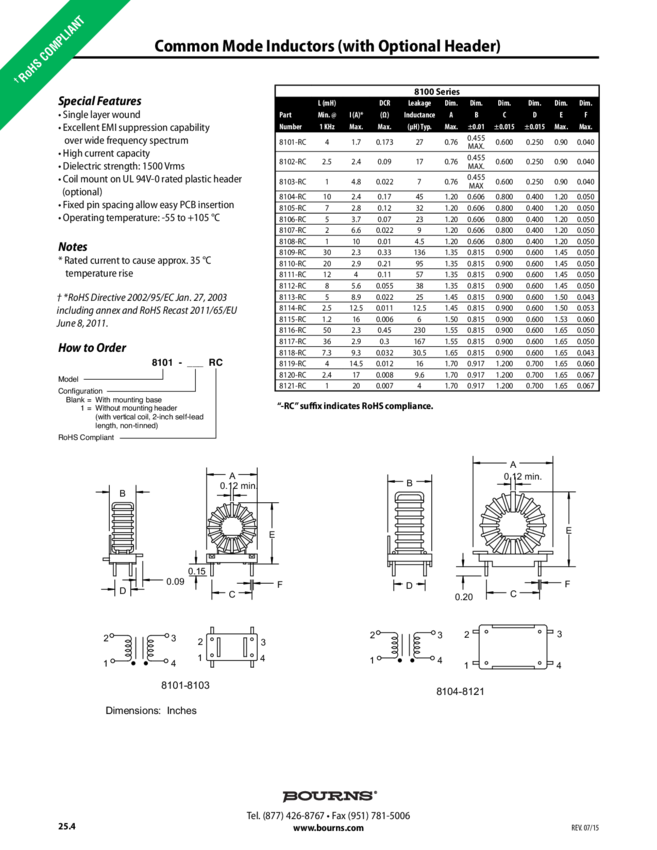 Ind Common Mode Toroid 7mH 1KHz 2.8A Pin