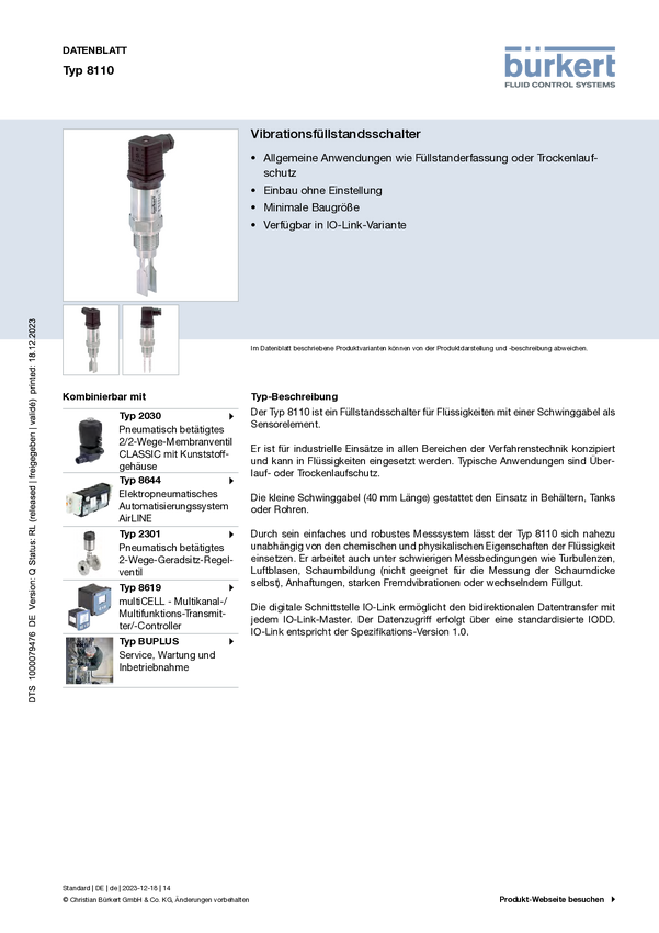 Bürkert 555292 8110, 1 szt.