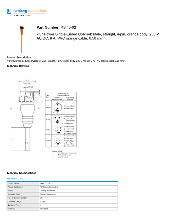 Lumberg Automation 81233 Złącze konfekcjonowane czujnika/aktuatora 7/8" złącze męskie proste 1.00 m Ilość pinów: 4 1 szt
