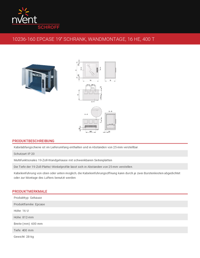 nVent SCHROFF 10236160 Szafka ścienna 600 x 812 x 400 szaro-biały (ral 7035) 1 szt.