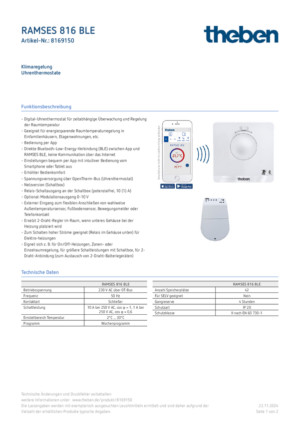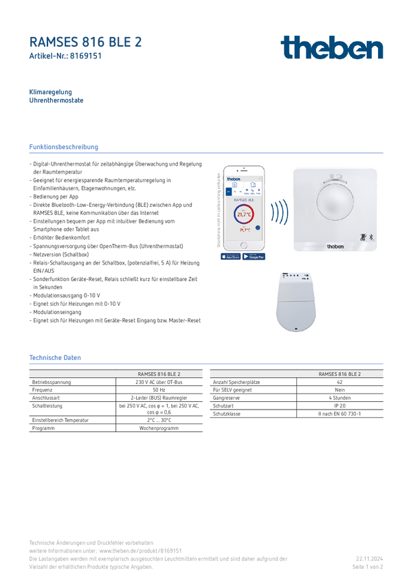 Termostat pokojowy Theben RAMSES 816 BLE 2 8169151 1 szt.