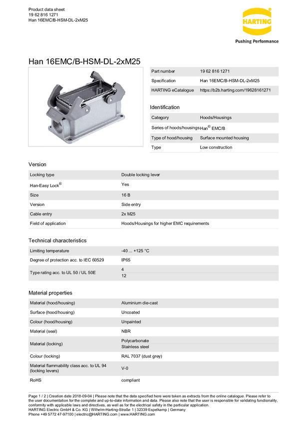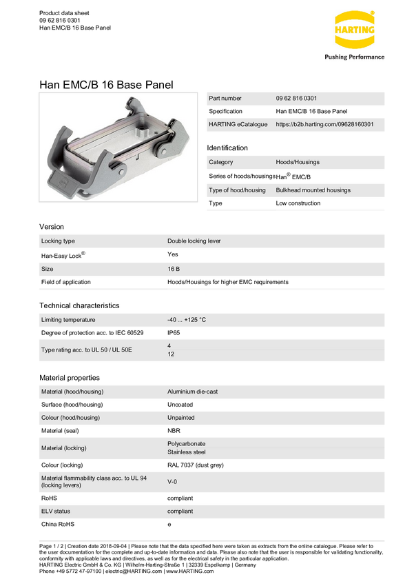 Obudowa podstawowa 19 62 816 0273 Harting 1 szt.
