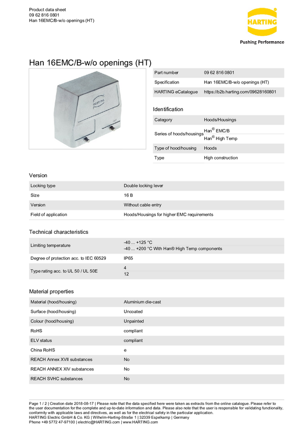 Obudowa tulejki 09 62 816 0801 Harting 1 szt.