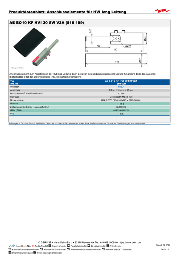 DEHN 819199 AE BO10 KF HVI 20 SW V2A Akcesorium montażowe 1 szt.