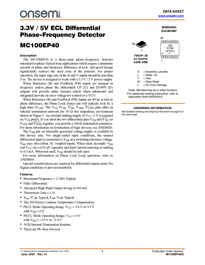 Phase-Frequency Detector, 3.3 V / 5 V, ECL Differential