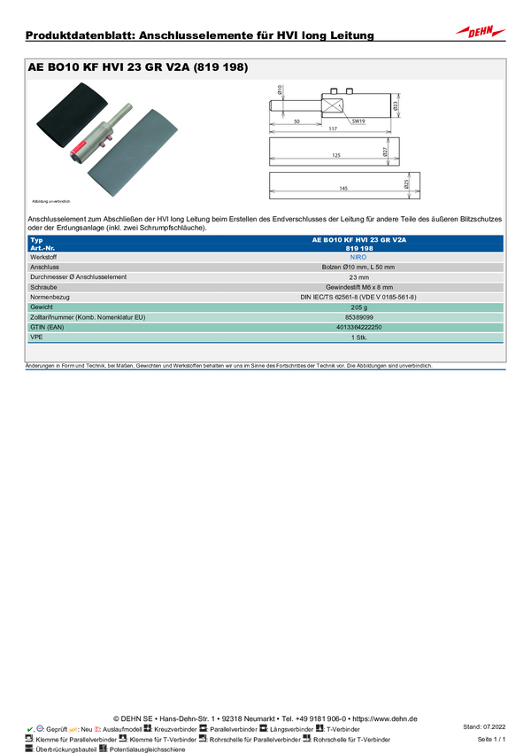 DEHN 819198 AE BO10 KF HVI 23 GR V2A Akcesorium montażowe 1 szt.