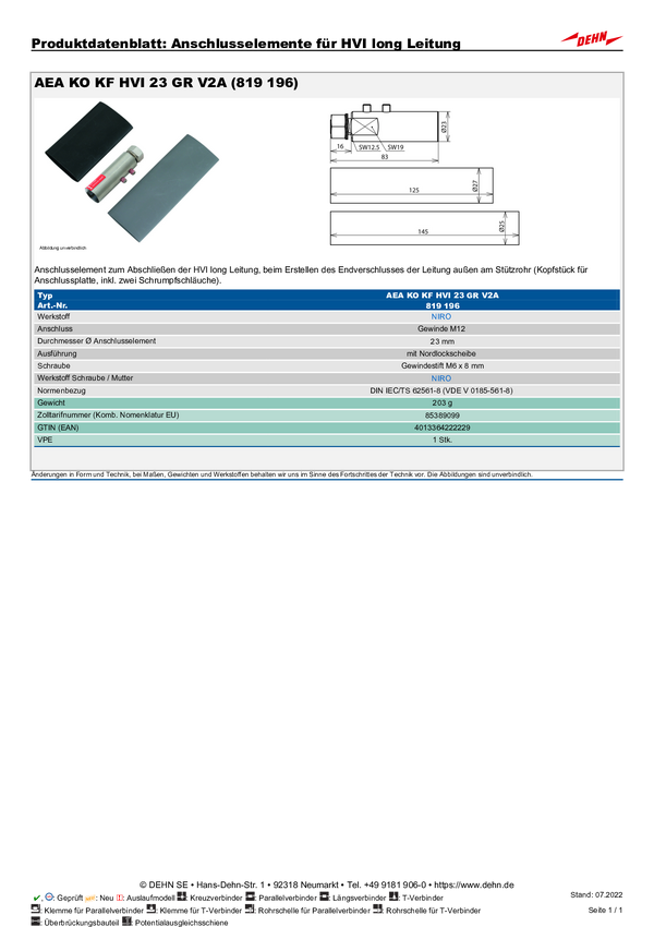 DEHN 819196 AEA KO KF HVI 23 GR V2A Akcesorium montażowe 1 szt.