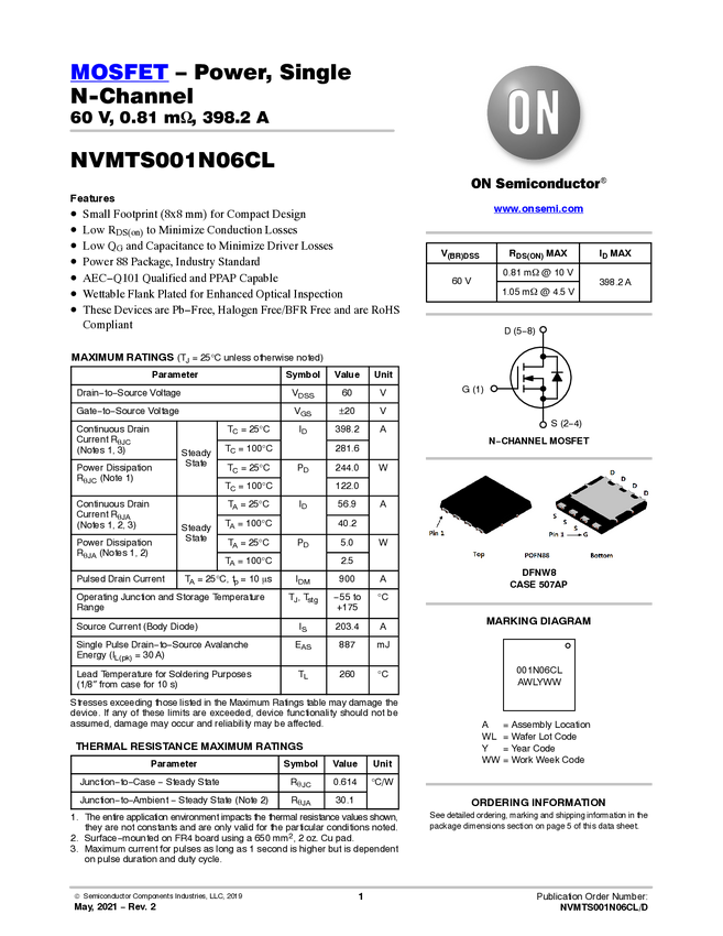 Single N-Channel Power MOSFET 60V, 328A, 0.81mΩ