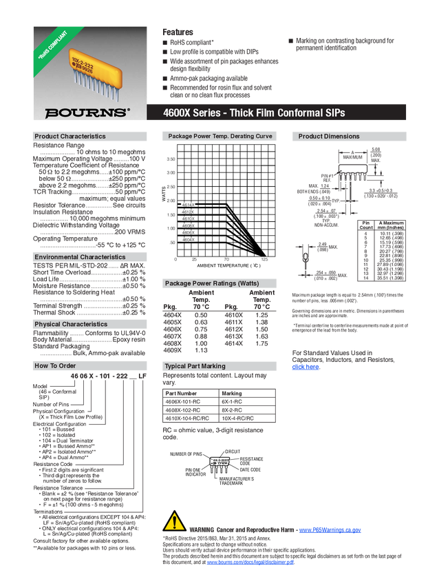Res Thick Film NET 4.7K Ohm 2% 3/4W ±100ppm/°C BUS Conformal 6-Pin SIP Pin Thru-Hole Ammo Pack