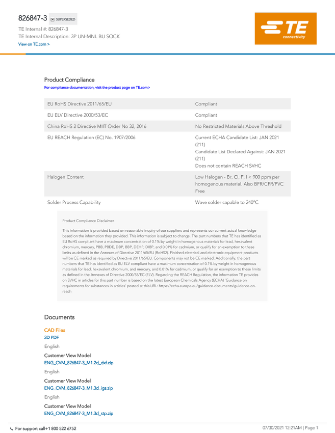 TE Connectivity TE AMP AMPMODU Mod I 826853-2, 1 szt.