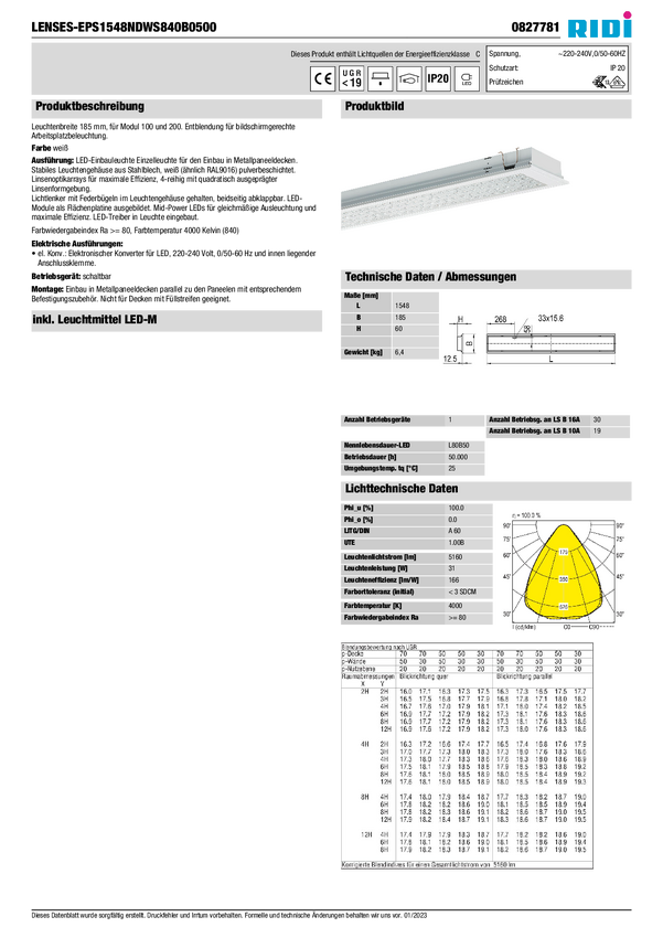 Oświetlenie wewnętrzne LED RIDI 827781 827781 31 W 5160 lm