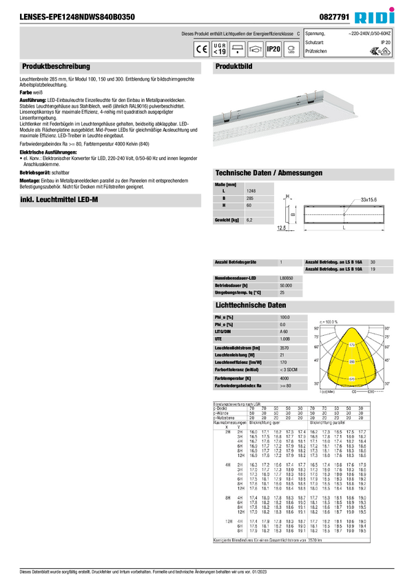 Oświetlenie wewnętrzne LED RIDI 827791 827791 21 W 3570 lm