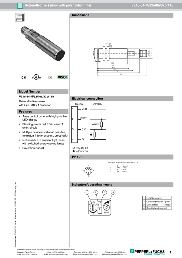 Czujnik fotoelektryczny Pepperl+Fuchs VL18-54-M/32/40a/82b/118 800114 1 szt.