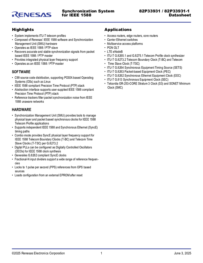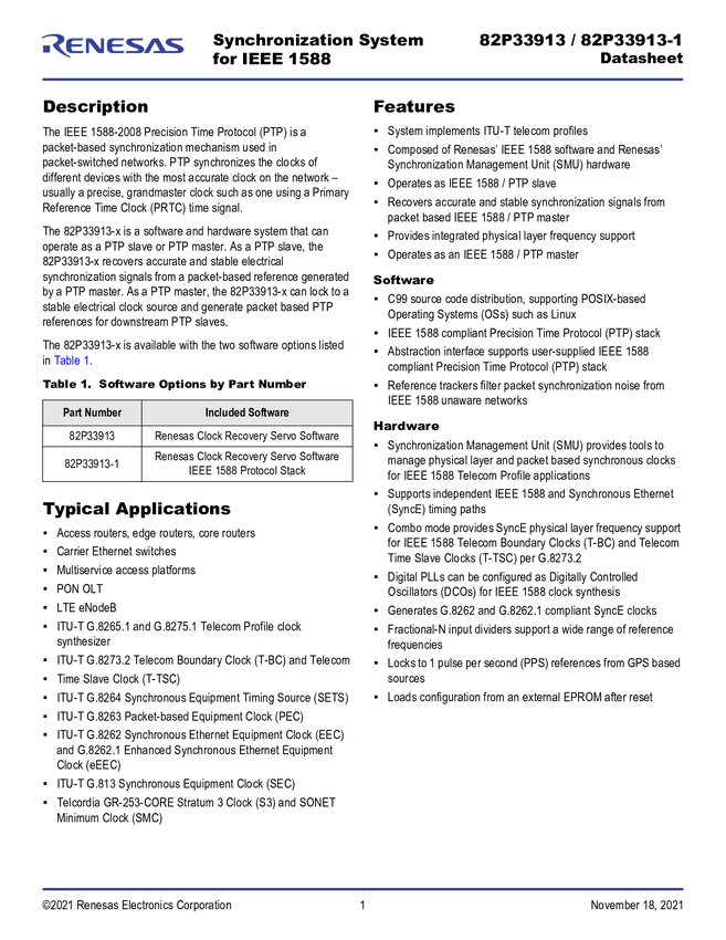 Synchronization Management Unit (SMU) for IEEE 1588 and Synchronous Ethernet