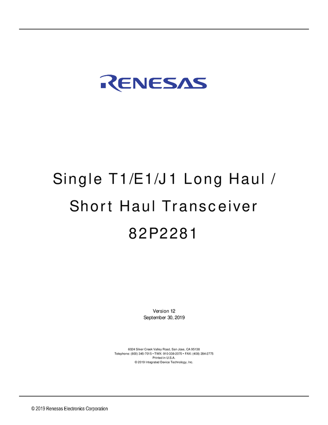 1 Channel T1 / J1 / E1 Transceiver