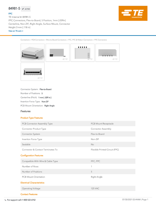 FFC & FEC CONNECTOR AND ACCESSORIES 84981-5 TE Connectivity Zawartość: 1 szt.