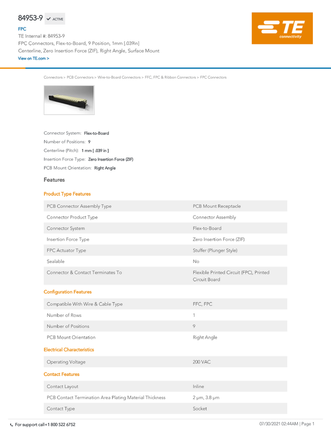 FPC Connectors 84953-9 TE Connectivity Zawartość: 1 szt.