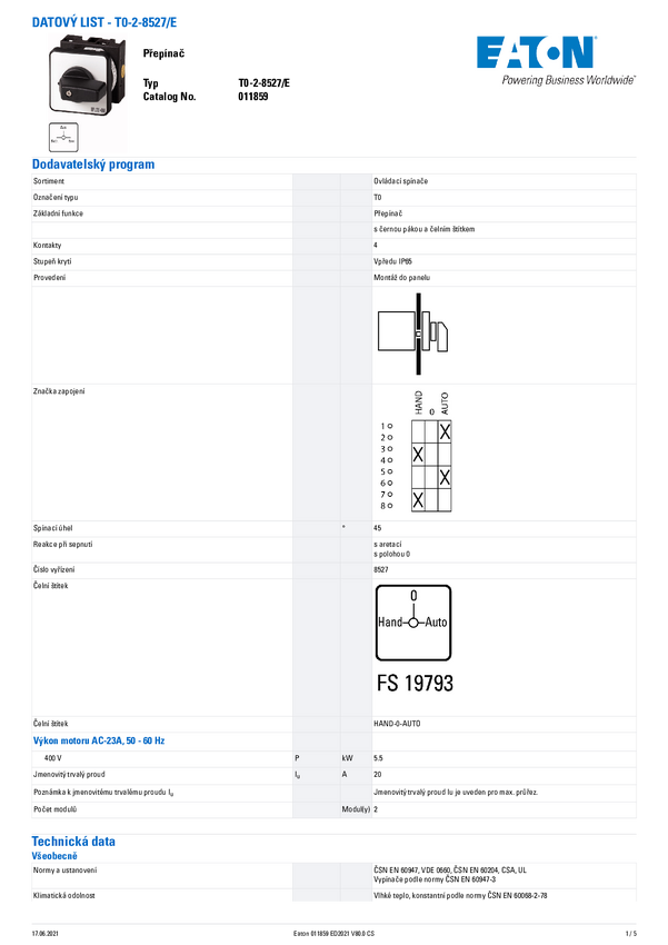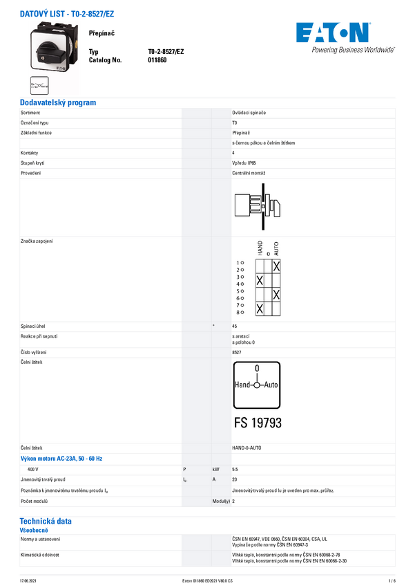 Eaton 011860 T0-2-8527/EZ Wyłącznik 1 szt.