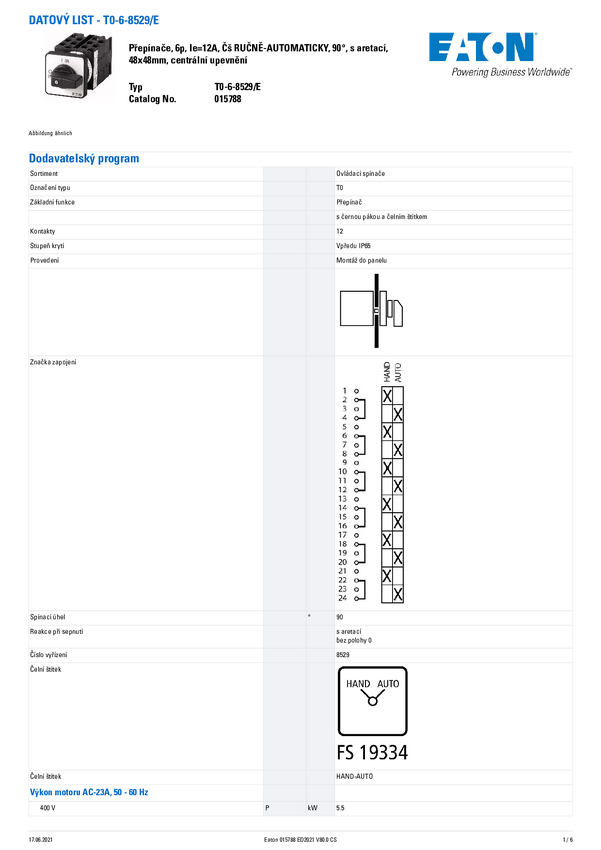 Eaton 015788 T0-6-8529/E Wyłącznik 1 szt.