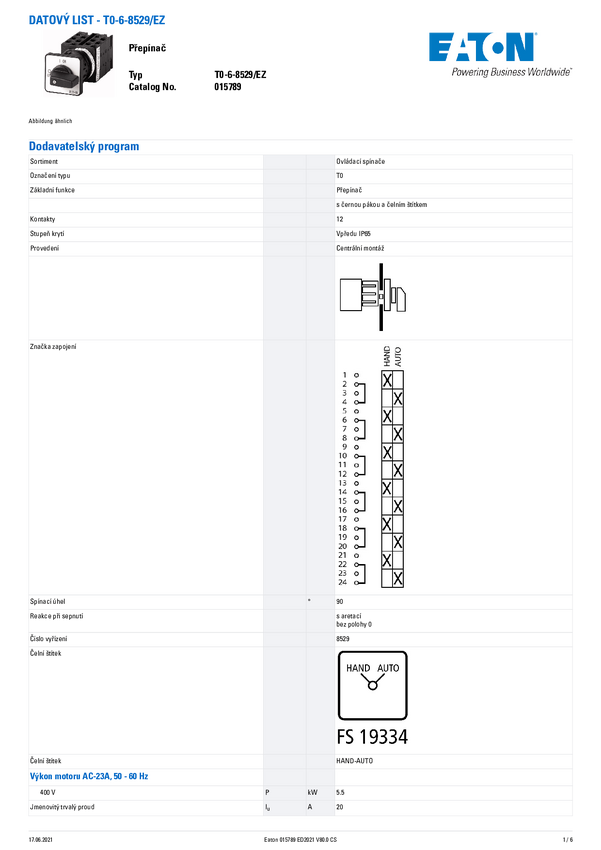 Eaton 015789 T0-6-8529/EZ Wyłącznik 1 szt.