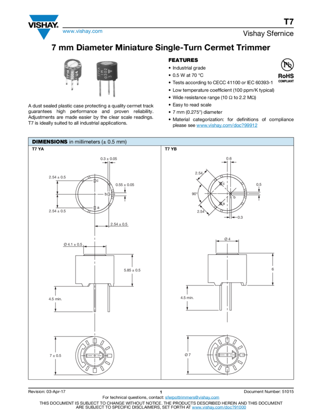 Res Cermet Trimmer 10K Ohm 20% 1/2W 4.1mm (7 x 5.85mm) Pin Thru-Hole Tube