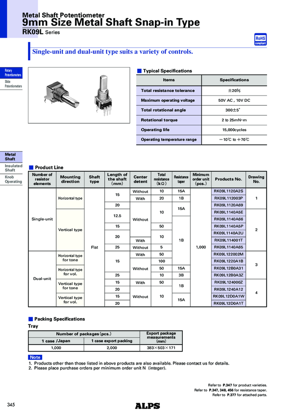 Res POT 50K Ohm 20% 1/20W 1(Elec)/1(Mech)Turn 6mm (27.4 X 12.1 X 14.85mm) Pin Panel Mount/Bracket Mount Tray