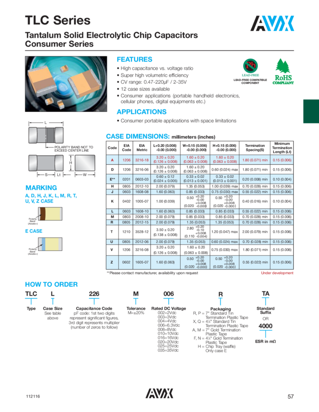 Cap Tant Solid 22uF 6.3V L CASE 20% (1.6 X 0.85 X 0.85mm) SMD 1608-10 Plastic T/R