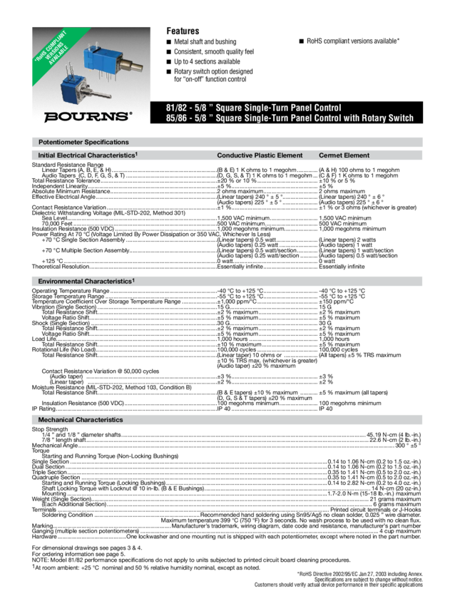 Res Cermet POT 10K Ohm 10% 1W 1(Elec)/1(Mech)Turn 6.35mm (44.46 X 15.88 X 22.85mm) J-Hook Panel Mount