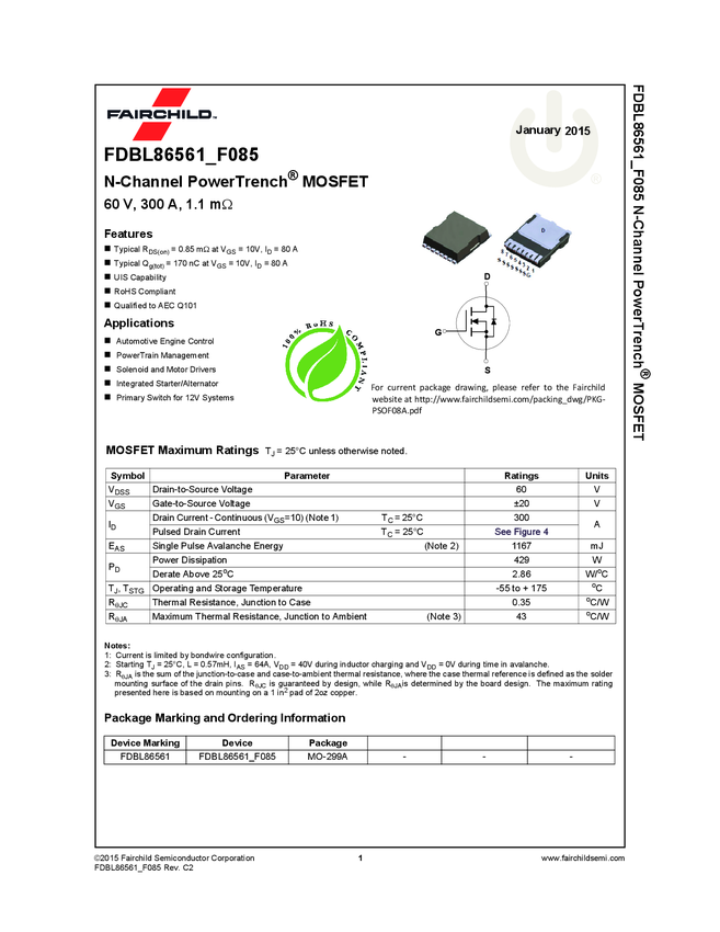 60V, 300A, 0.85mΩ, TO-LL N-Channel PowerTrench®