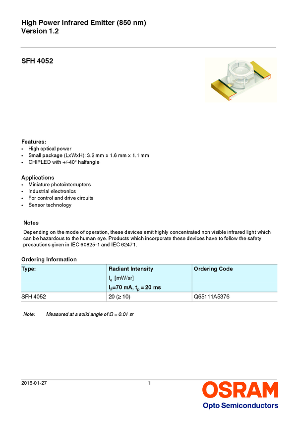 LED IrLED 1030mW 860nm Chip LED 3-Pin SMD T/R
