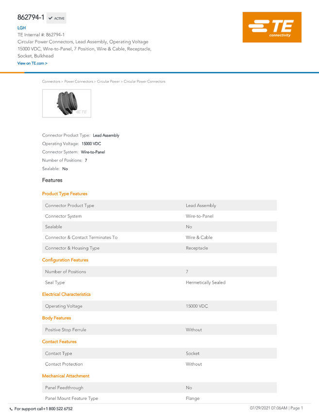 TE Connectivity 862794-1 1 szt. karton