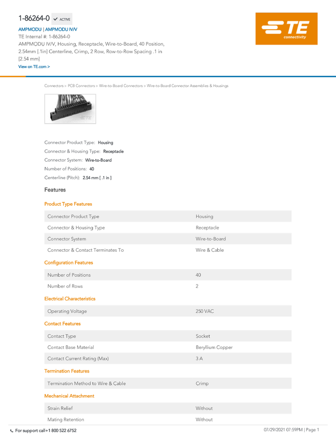 TE Connectivity 1-86264-0 TE AMP AMPMODU Mod IV V, 1 szt.